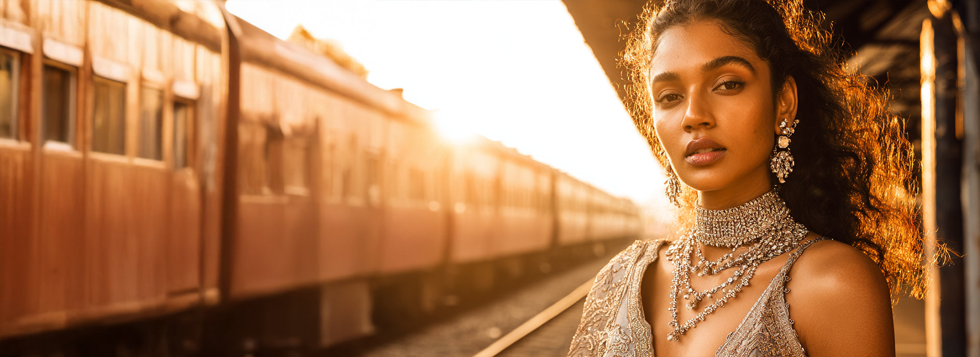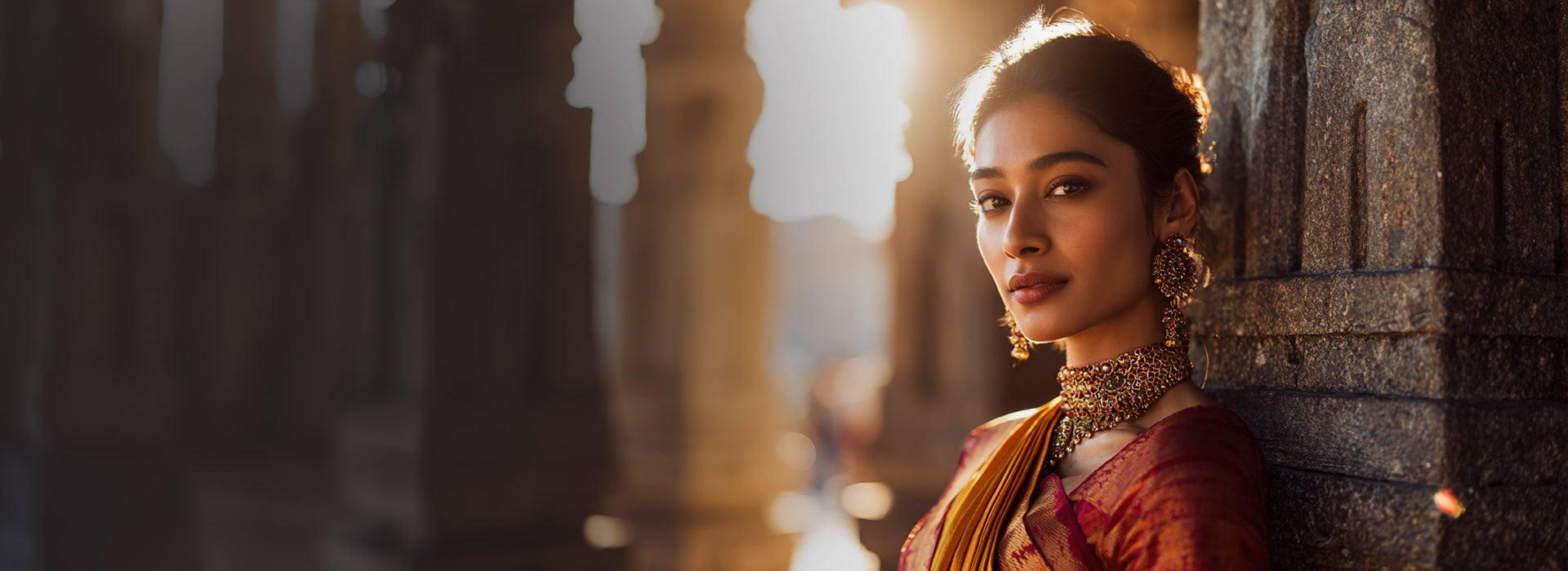 Lakshmi-Venkateshwara Diety Paisley Spine Long Haara with Pearl Canopy